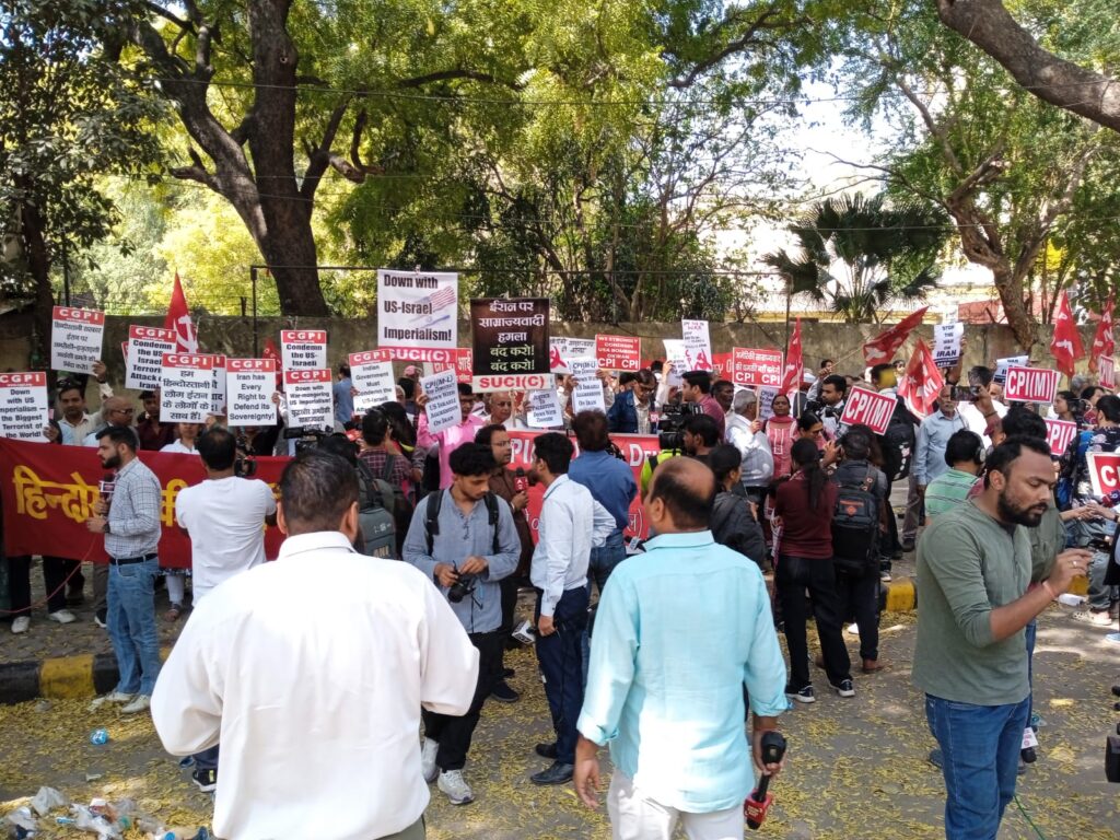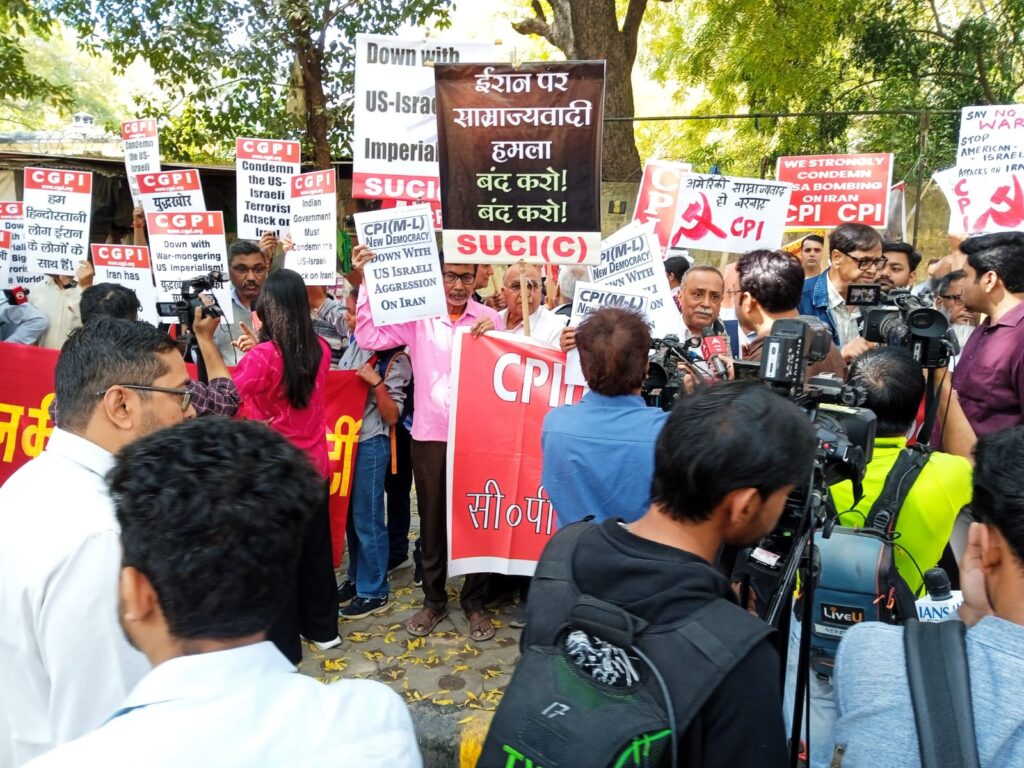 Slogans condemning “American imperialism” and “Zionism” echoed at the protest site, with demonstrators demanding that the Modi government oppose what they described as an imperialist attack on Iran. Protesters carried placards reading “Stop US-Israel Attacks on Iran” and “Respect Sovereignty.”
